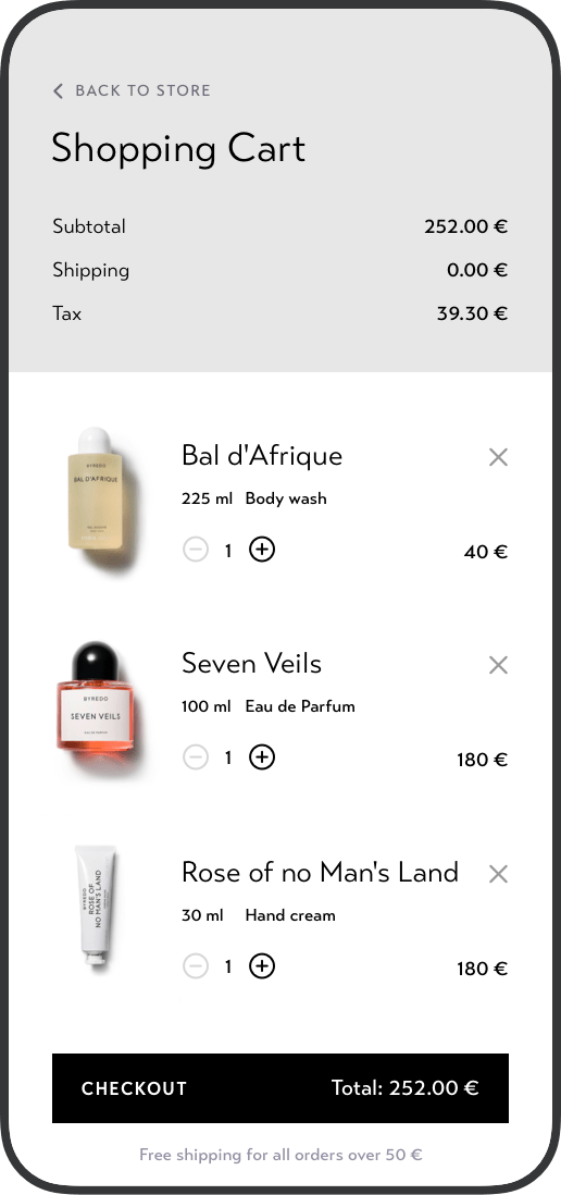 Current website does not support mobile version for shopping cart at all. Cart and checkout flows are the most crucial part in any e-commerce service which must be responsively built and polished to perfection