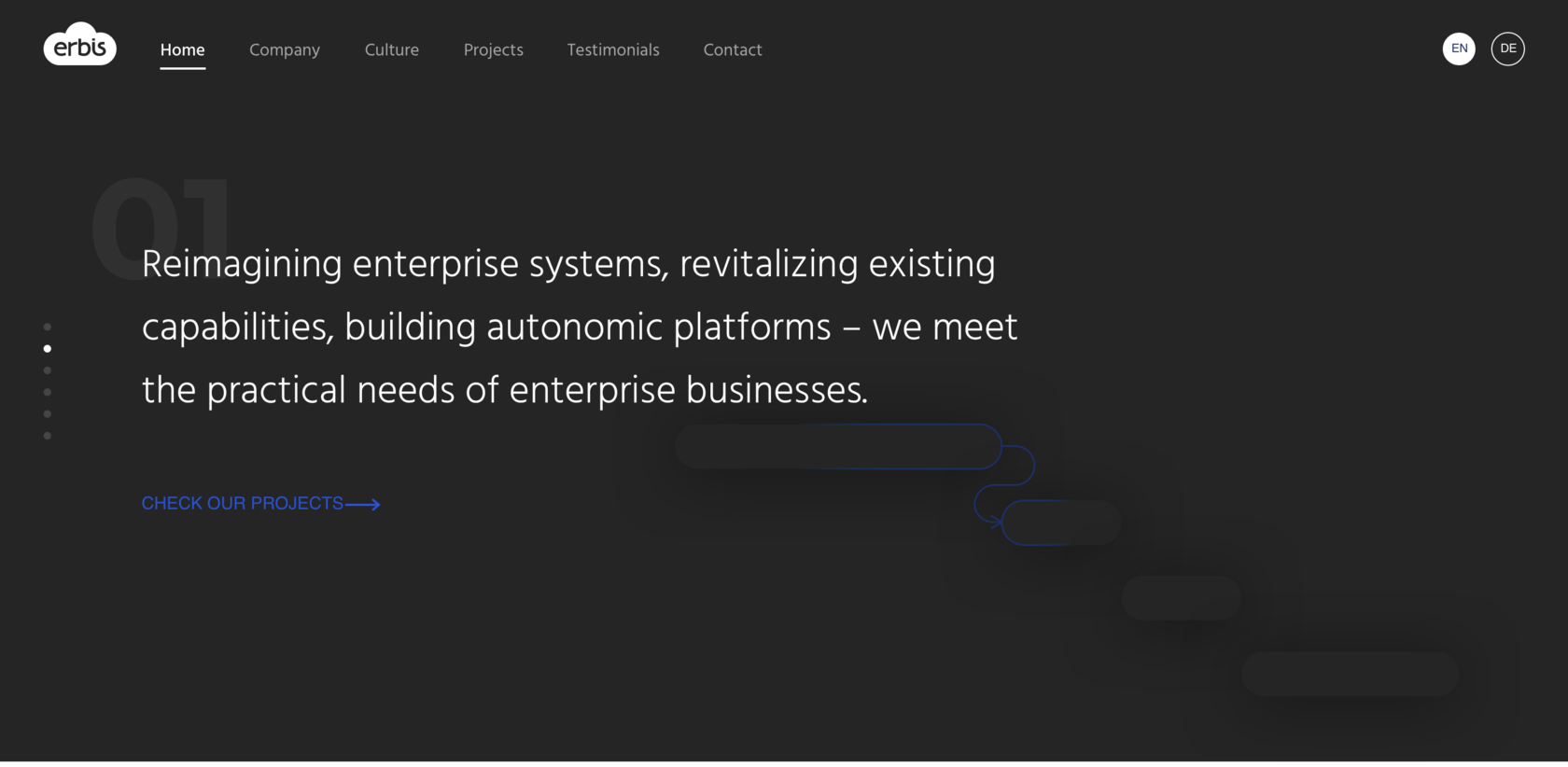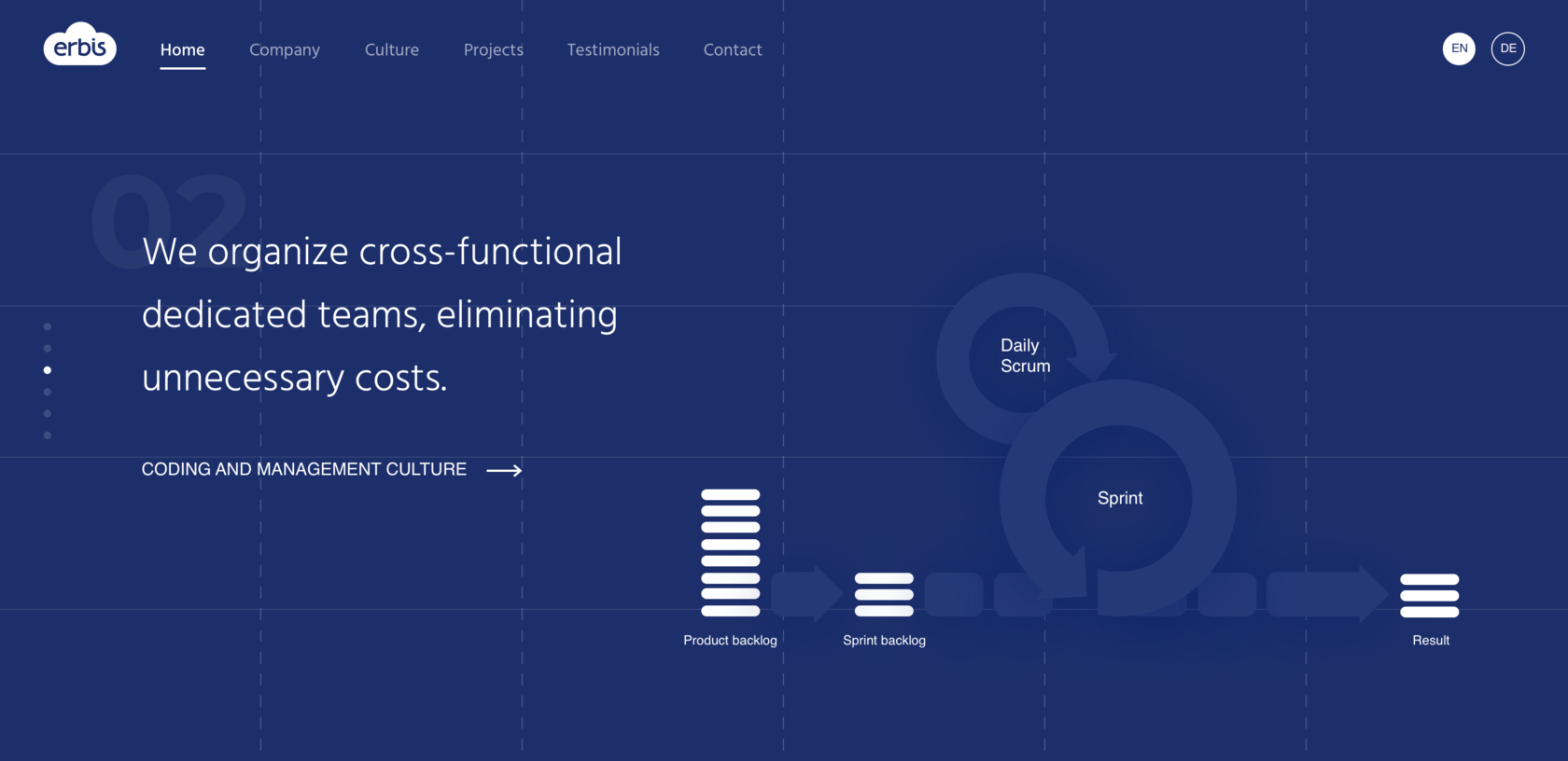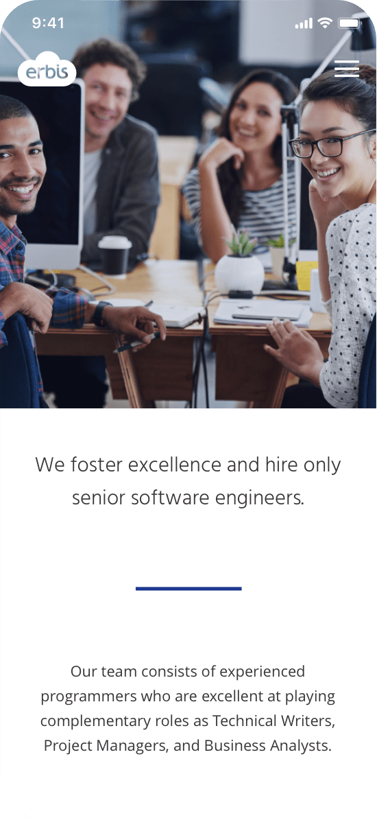 We've got a challenge to develop a corporate web-site for Erbis. The purpose of the site is to engage users to convert them into customers by showcasing company's high expertise and development approach.