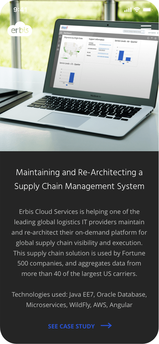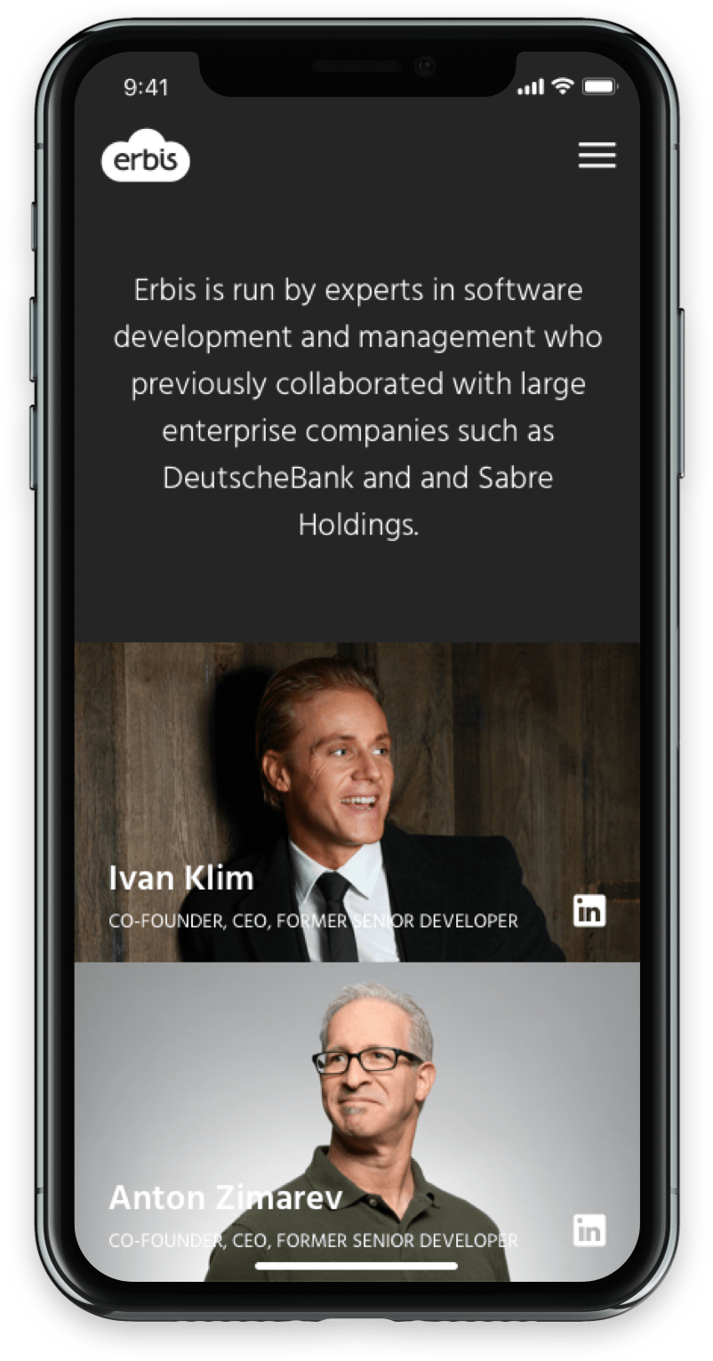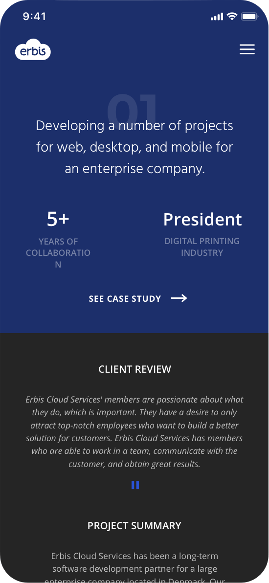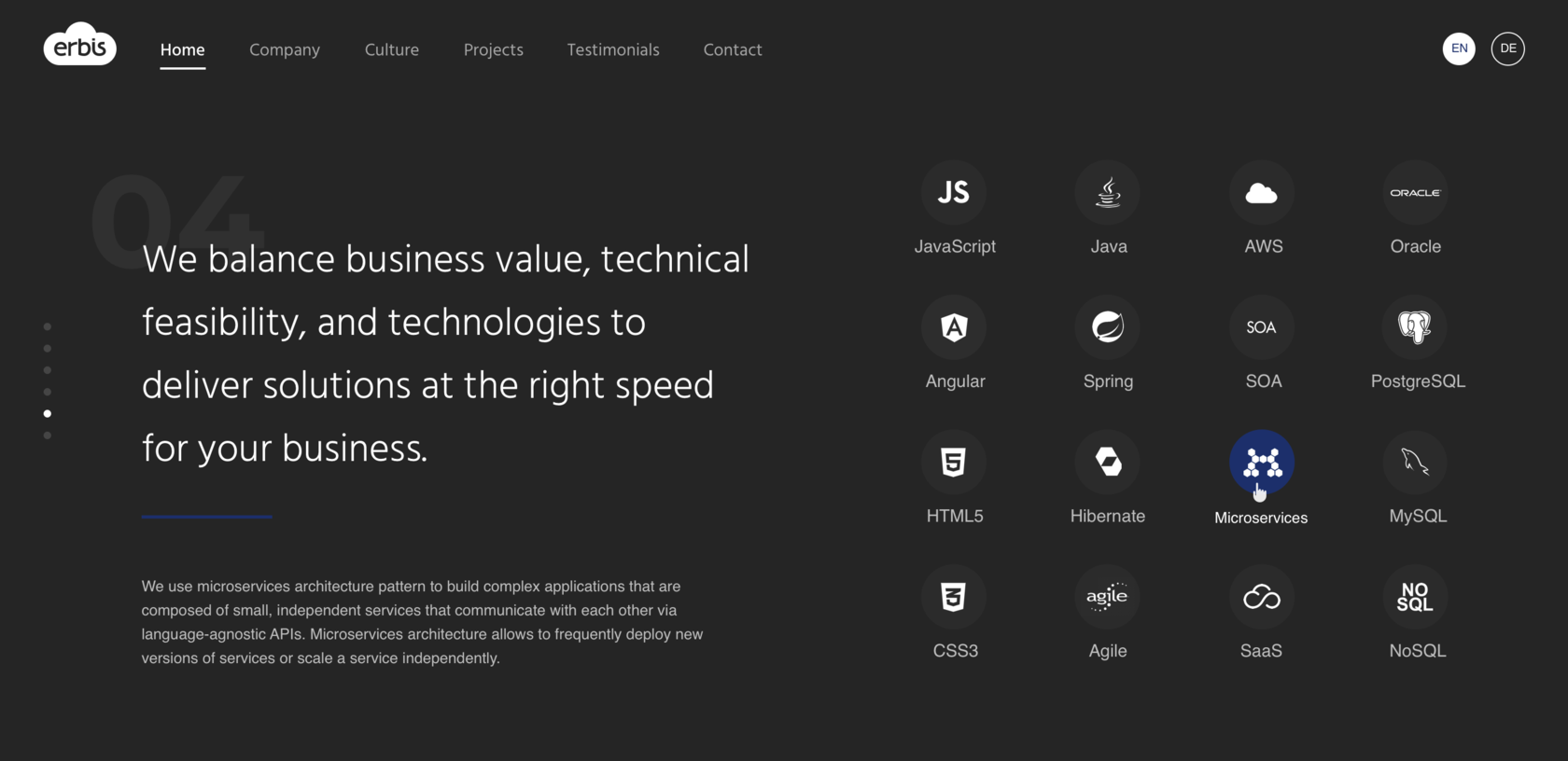 We've got a challenge to develop a corporate web-site for Erbis. The purpose of the site is to engage users to convert them into customers by showcasing company's high expertise and development approach.